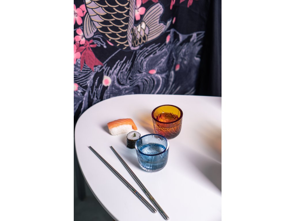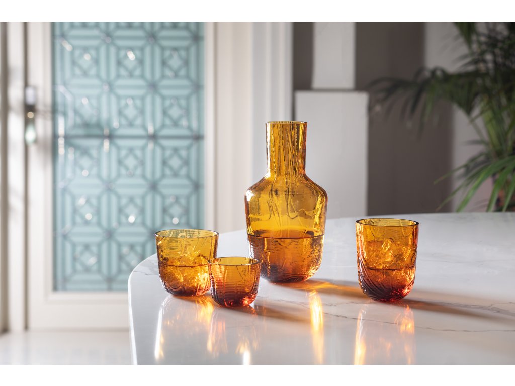 Delicately balanced and shaped by hand, these unique shot glasses bring elegance to the party. Ideal for spiced rums or a fine smooth vodka, no evening is complete without the indulgence of an aperitif. The Crust collection remains a bold choice for its intense hues of amber and azure, so be bold. Be indulgent. Give your guests a little taste of luxury.