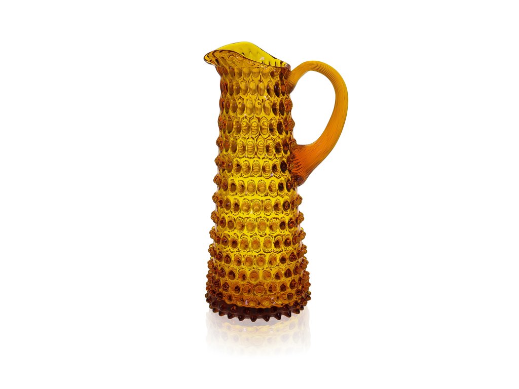 Bring the warmth and glow of summer afternoons to the dinner table with this tall Amber pitcher. Perfect for all occasions, this tall slender jug also makes a stunning vase for fresh long-stem flowers and foliage. With its classic Bohemian Hobnail design, this piece can take centre stage at the heart of any table display or interior.