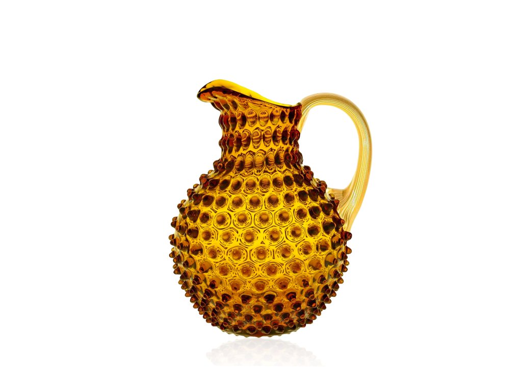 Whether it's wine or lemonade, prepare to liven up any casual indoor or outdoor gathering with our all-purpose hobnail glass jug. A modern approach towards the Bohemian glass tradition combined with the elegance of the crystal glass, your amber hobnail jug will make your interior shine.