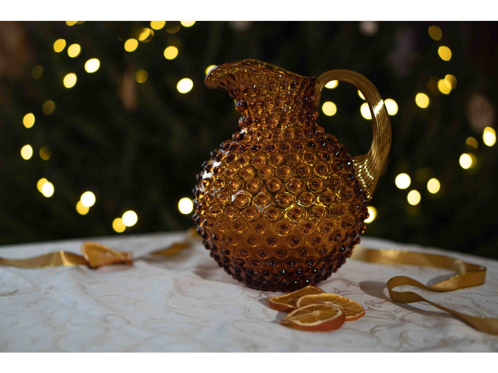 Whether it's wine or lemonade, prepare to liven up any casual indoor or outdoor gathering with our all-purpose hobnail glass jug. A modern approach towards the Bohemian glass tradition combined with the elegance of the crystal glass, your amber hobnail jug will make your interior shine.