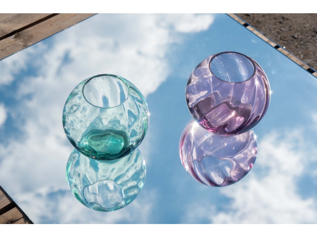 Beryl Marika Vase - statement piece of glassware, this vase reflects the light in a beautiful way. Its unorthodox shape makes this vase a perfect fit for fresh flowers with short stems cut straight from your garden.