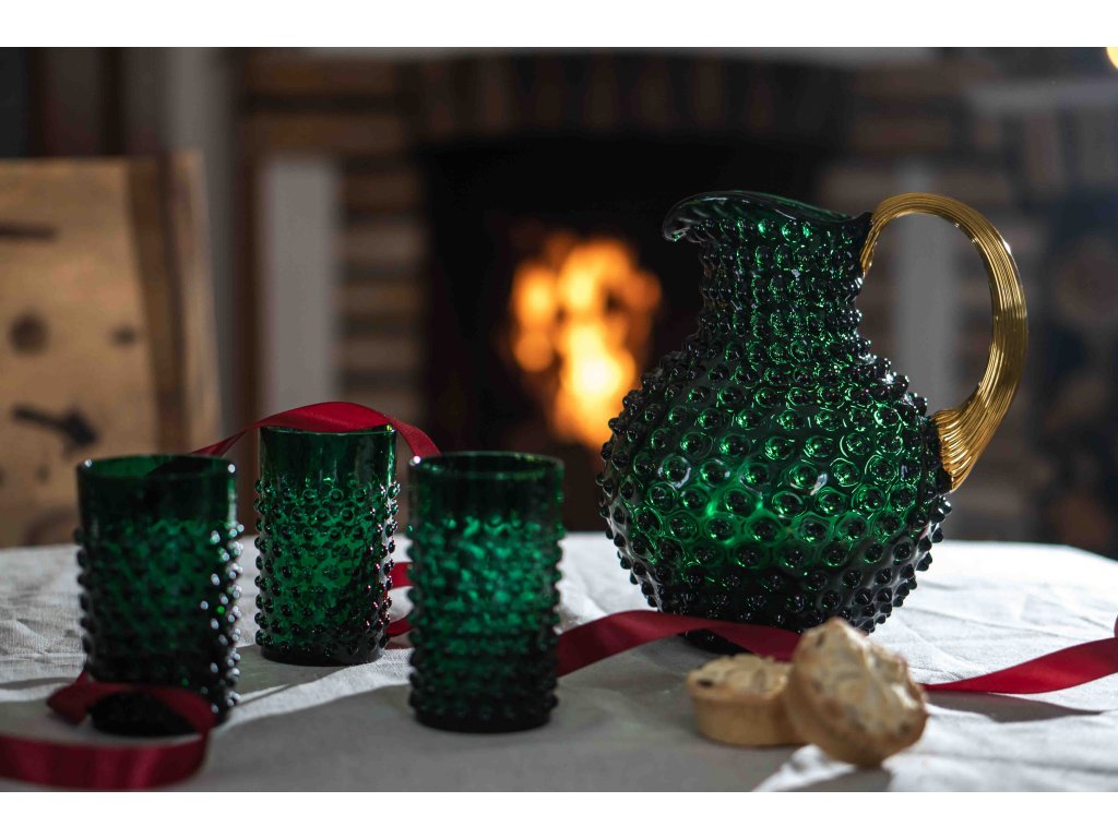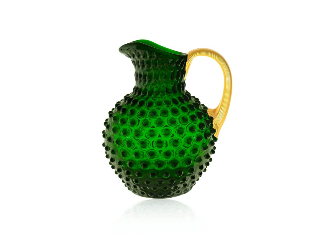 Whether it's wine or lemonade, prepare to liven up any casual indoor or outdoor gathering with our all-purpose hobnail glass jug. A modern approach towards the Bohemian glass tradition combined with the elegance of the crystal glass, your green hobnail jug will make your interior shine.