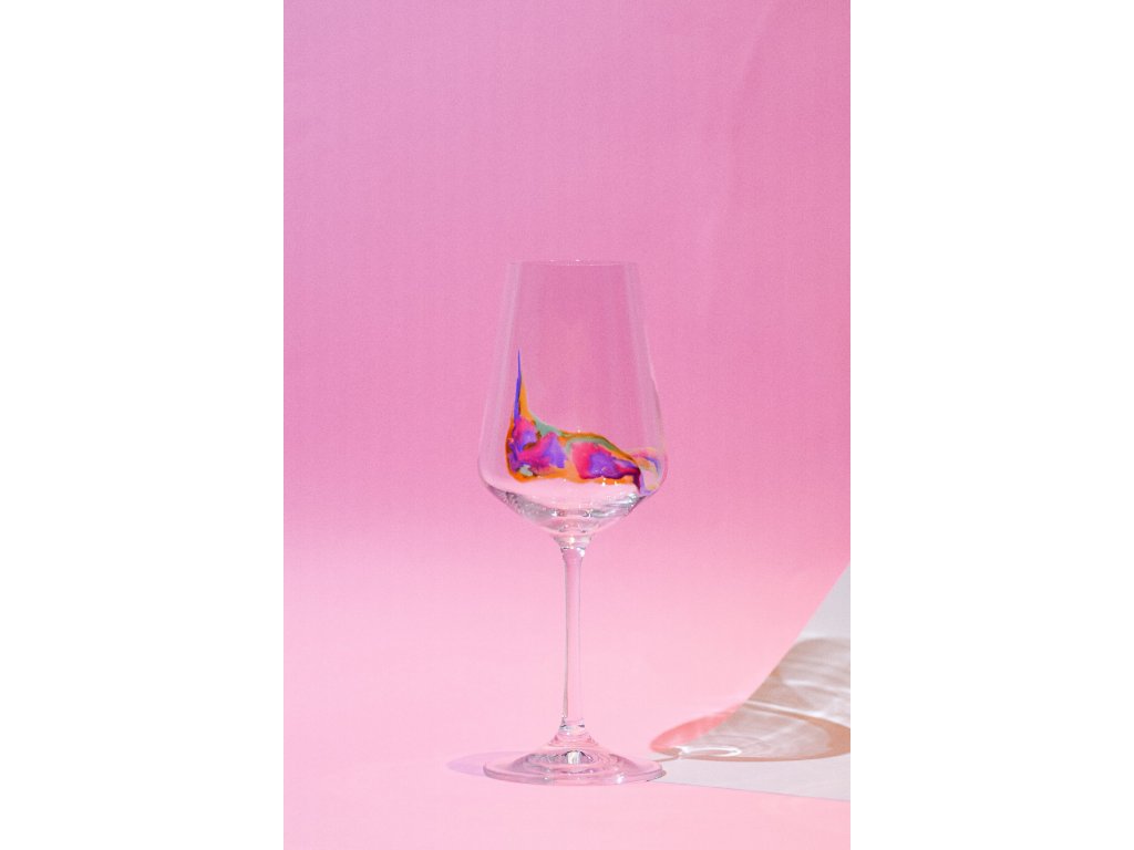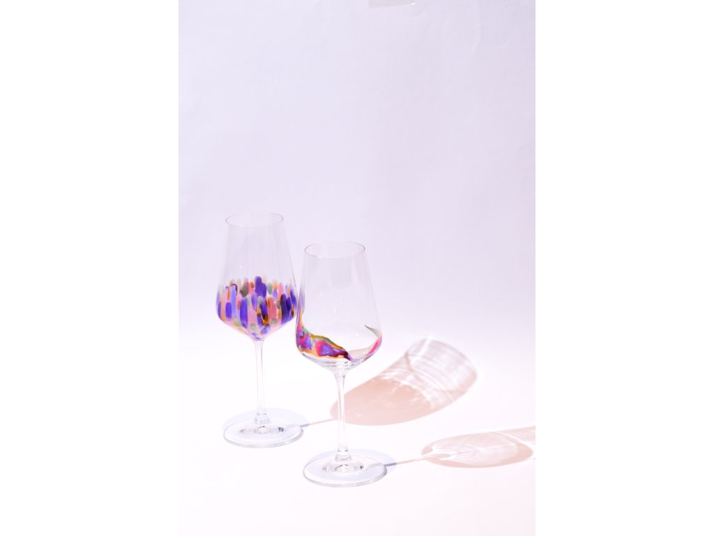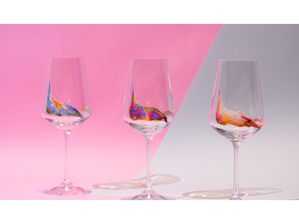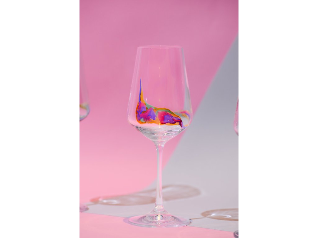 Hand Painted Sevilla White Wine 350 ml Stripe Flamingo (set of 2)