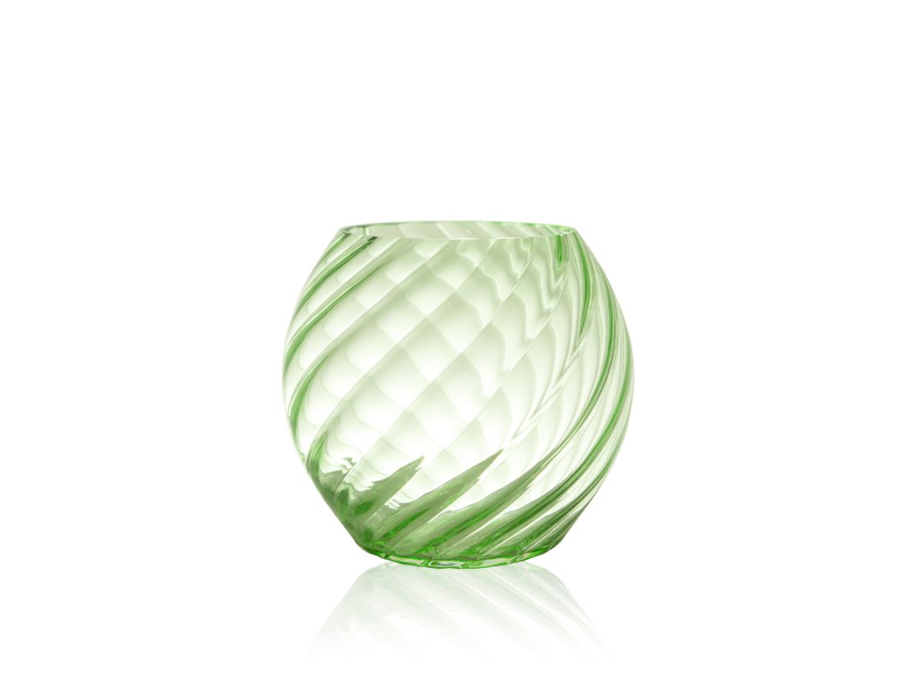Light Green Marika Round Vase Large - statement piece of glassware, this vase reflects the light in a beautiful way. Its unorthodox shape makes this vase a perfect fit for fresh flowers with short stems cut straight from your garden.
