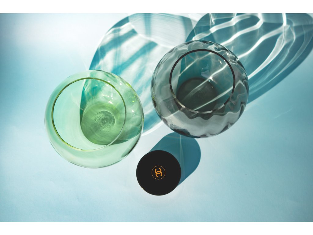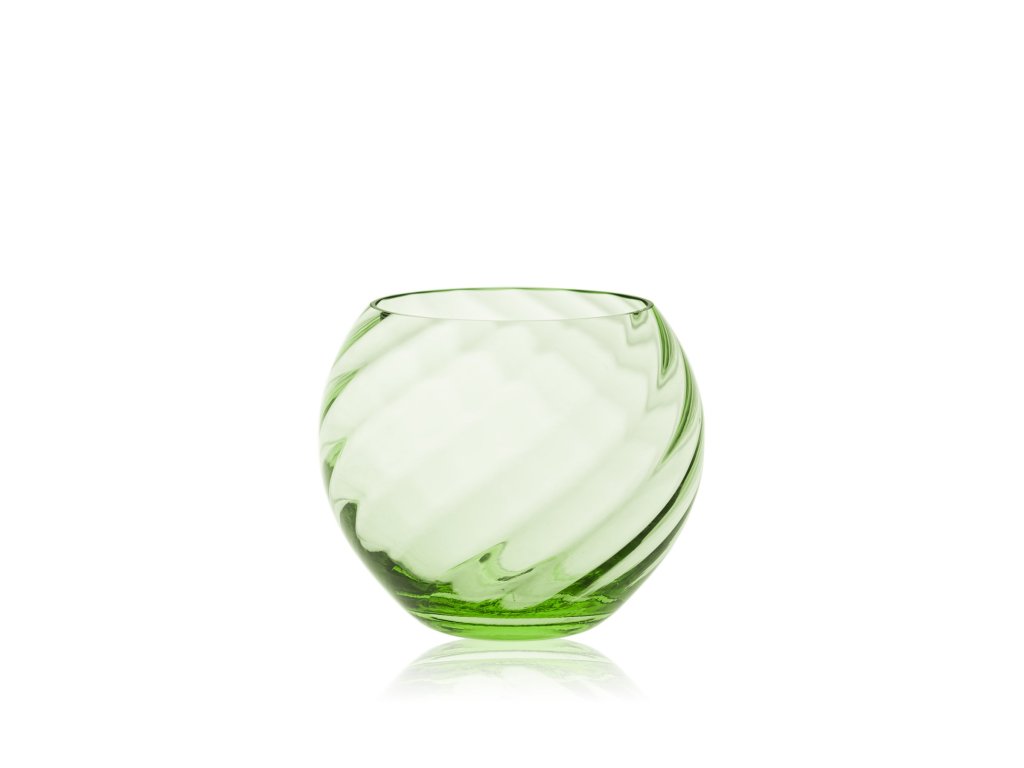 Light Green Marika Vase - statement piece of glassware, this vase reflects the light in a beautiful way. Its unorthodox shape makes this vase a perfect fit for fresh flowers with short stems cut straight from your garden.