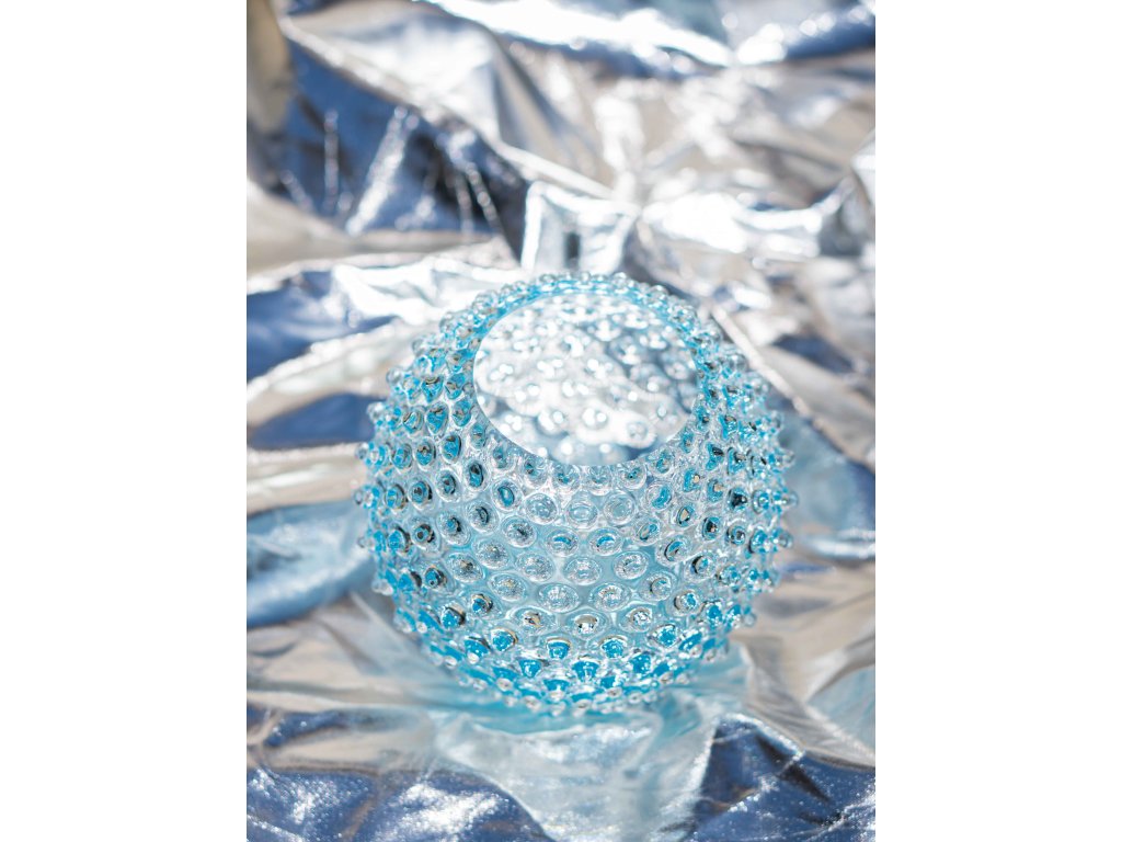 Underlay Azure Hobnail Vase - statement piece of glassware, this vase reflects the light in a beautiful way. Its unorthodox shape and bobbles make this vase a perfect fit for fresh flowers with short stems cut straight from your garden.
